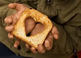 Because of a piece of bread, he agreed to help the cook from a wealthy house carry some heavy bags