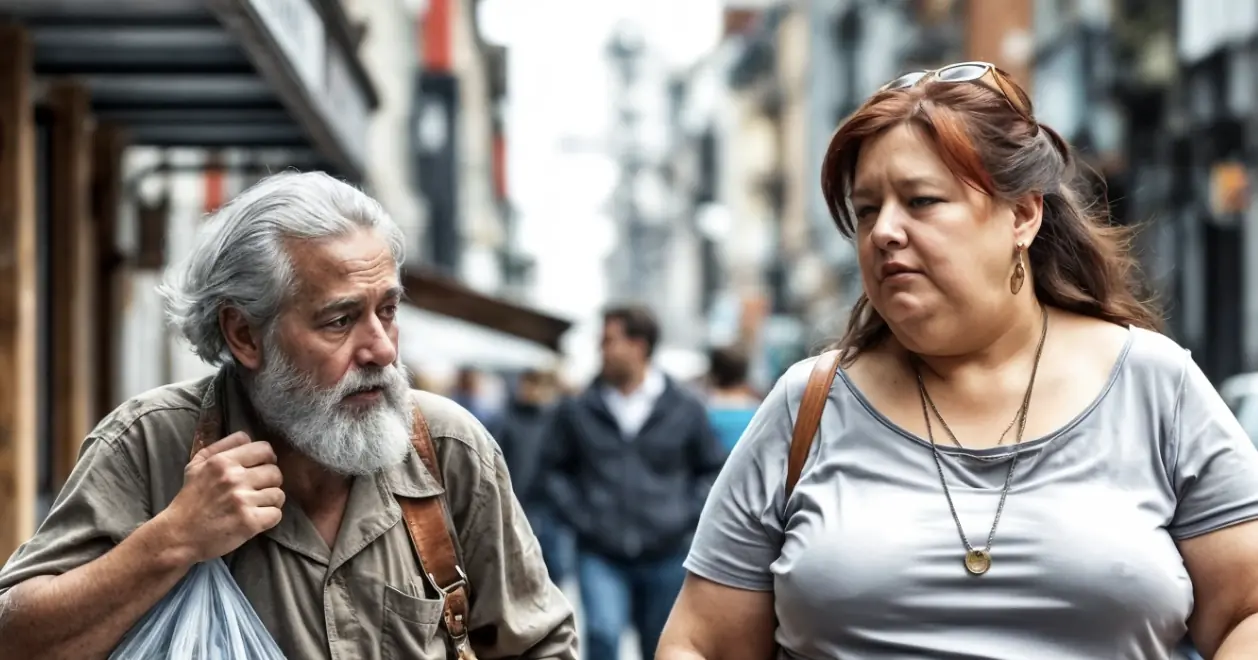“— Miss, may I help you?” he called to the woman, noticing how she was struggling to carry two heavy bags.