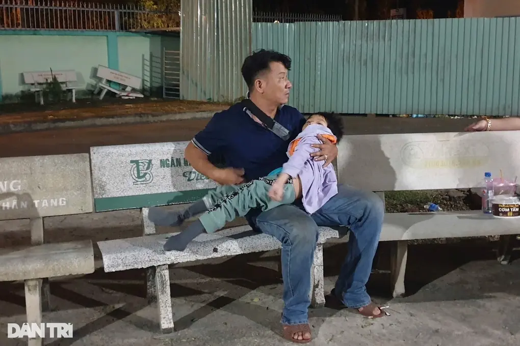 Mr. Cuong said that the girl in his arms is named Nha T. (8 years old, daughter of Mr. D.). T. is sick, so her father and grandmother took her to Ho Chi Minh City to rent a house in District 7 for treatment.