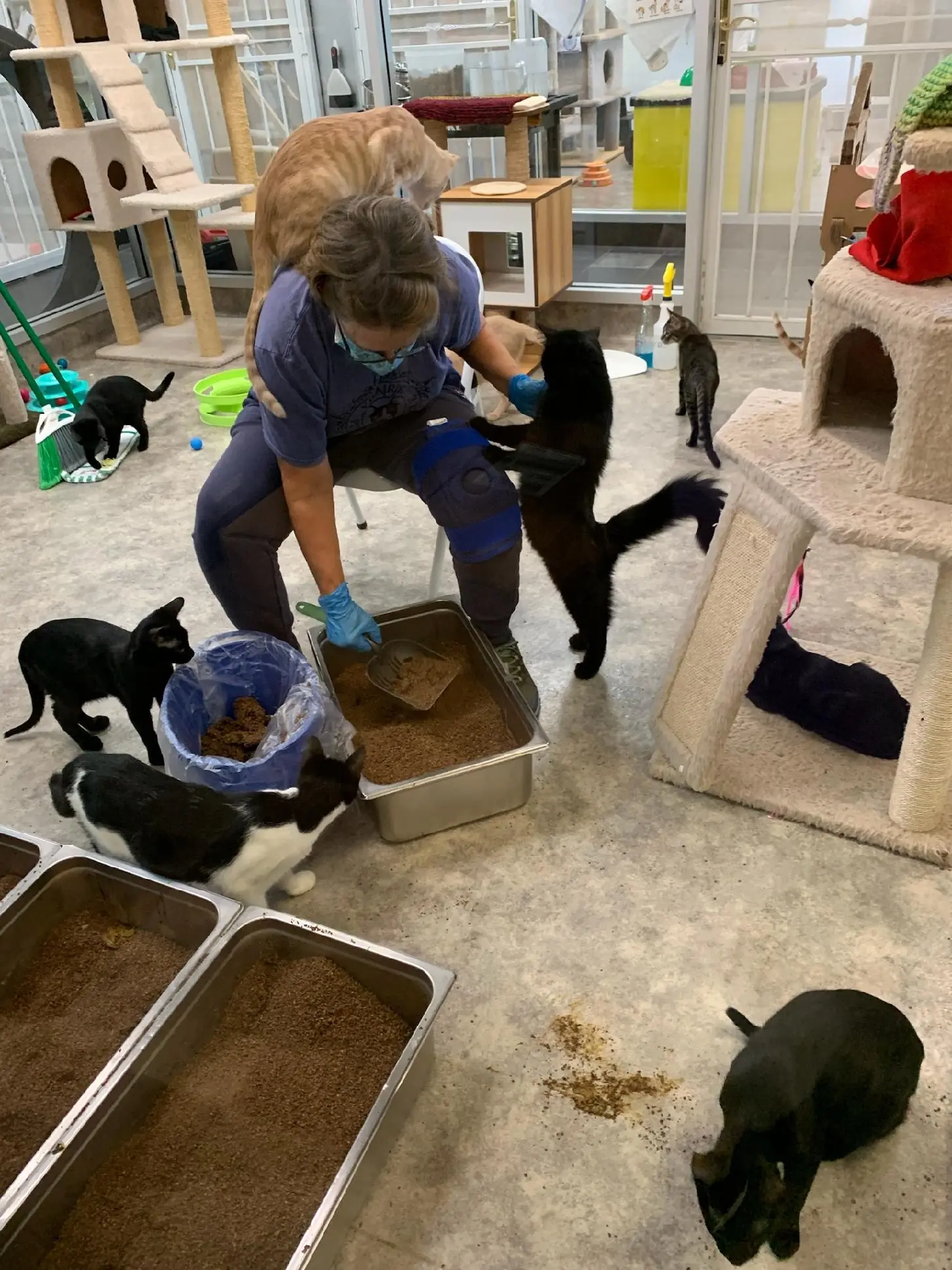 A rescue that supports both cats and dogs, relying heavily on volunteers for daily care.