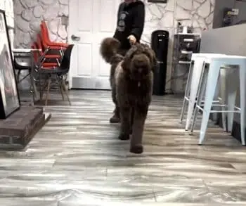 Theo is a Newfie-poo with soft eyes and an even softer heart. Shelter staff explain that he came from an owner who loved him but could not meet his needs in a busy city environment. Crowded sidewalks, constant noise, and tight spaces overwhelmed him. On the leash, surrounded by people and other dogs, Theo struggled. It was not aggression or fear, just too much stimulation with nowhere to release it. The shelter believed he needed something different. Space. Calm. Freedom.