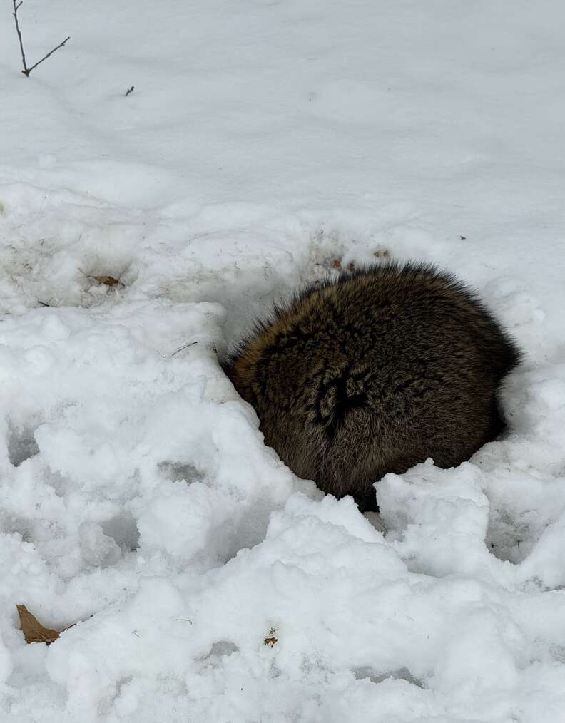 Man Notices Snow-Covered “Ball Of Fur” In His Yard — Then It Suddenly Moves