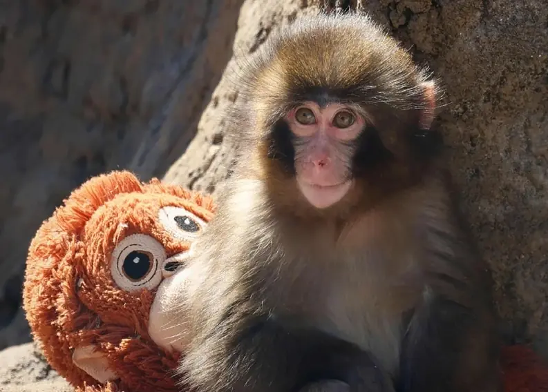 To help him cope with the stress of this new environment, the zoo gave him a stuffed toy monkey.