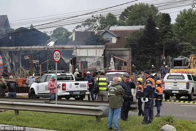 The scene of the plane crash that killed everyone on board and injured many people on the ground in Brazil