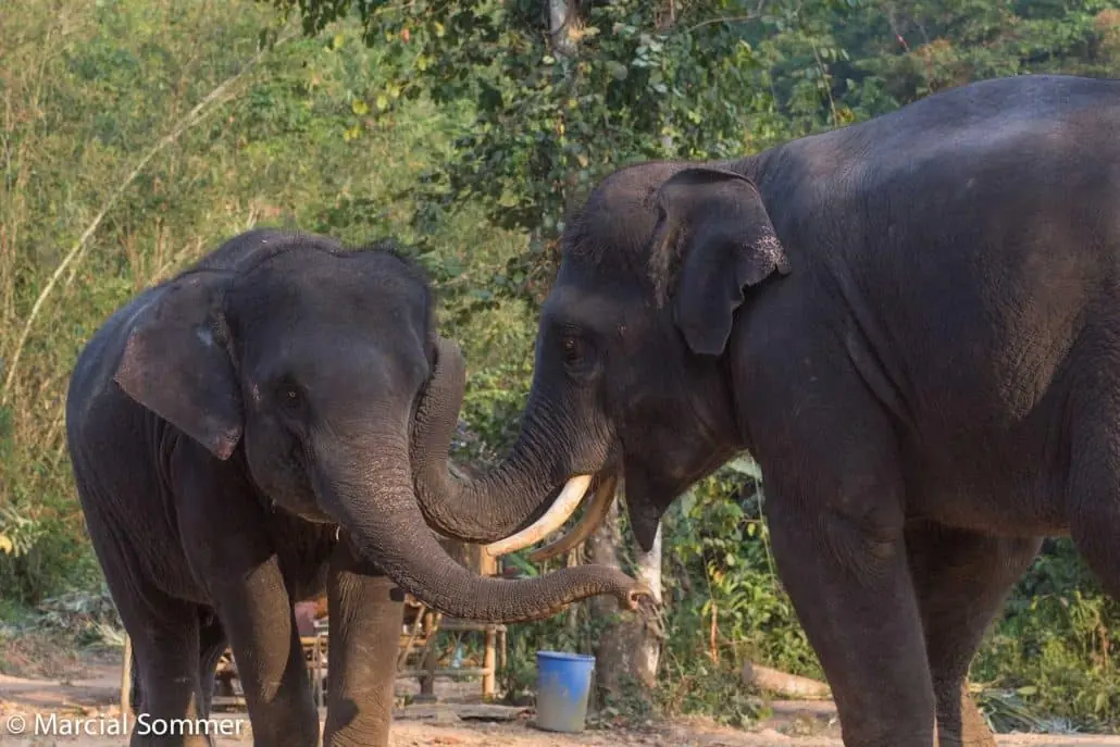Touching with their trunks